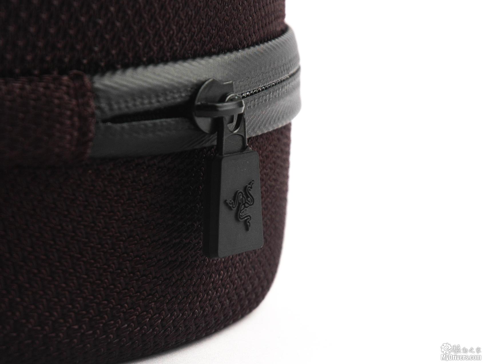 就当笔者准备打开包装时发现,上面拉链的设计同样非常细腻,拉环位置还安装了一个橡胶材质的拉头,并且上面还有一个采用了浮雕工艺的Razer LOGO。面对如此细致的包装设计,笔者对里面巨齿鲨耳机更加期待。