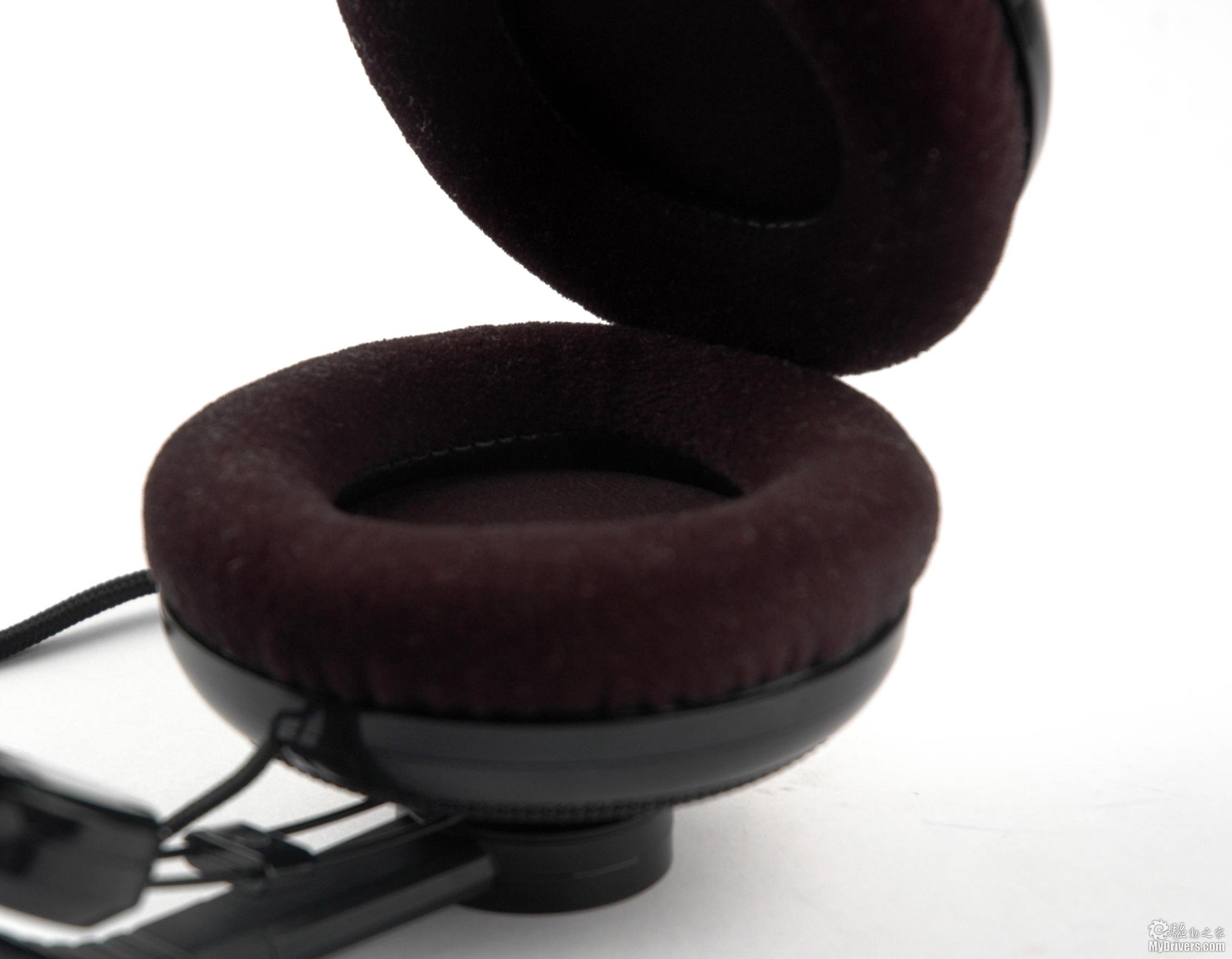 单元内部的采用了类似天鹅绒的海绵垫圈,内侧的连接部分则是由真皮制成,这样的设计能够加强耳罩的结实度,同时也能够带来非常舒适的佩戴感,不会对耳廓造成太大的压力。另外值得一提的是,柔结构的耳罩在透气性方面向来较差,但这款耳机却有非常不错的改善,即使长时间佩戴也不会感到闷热。