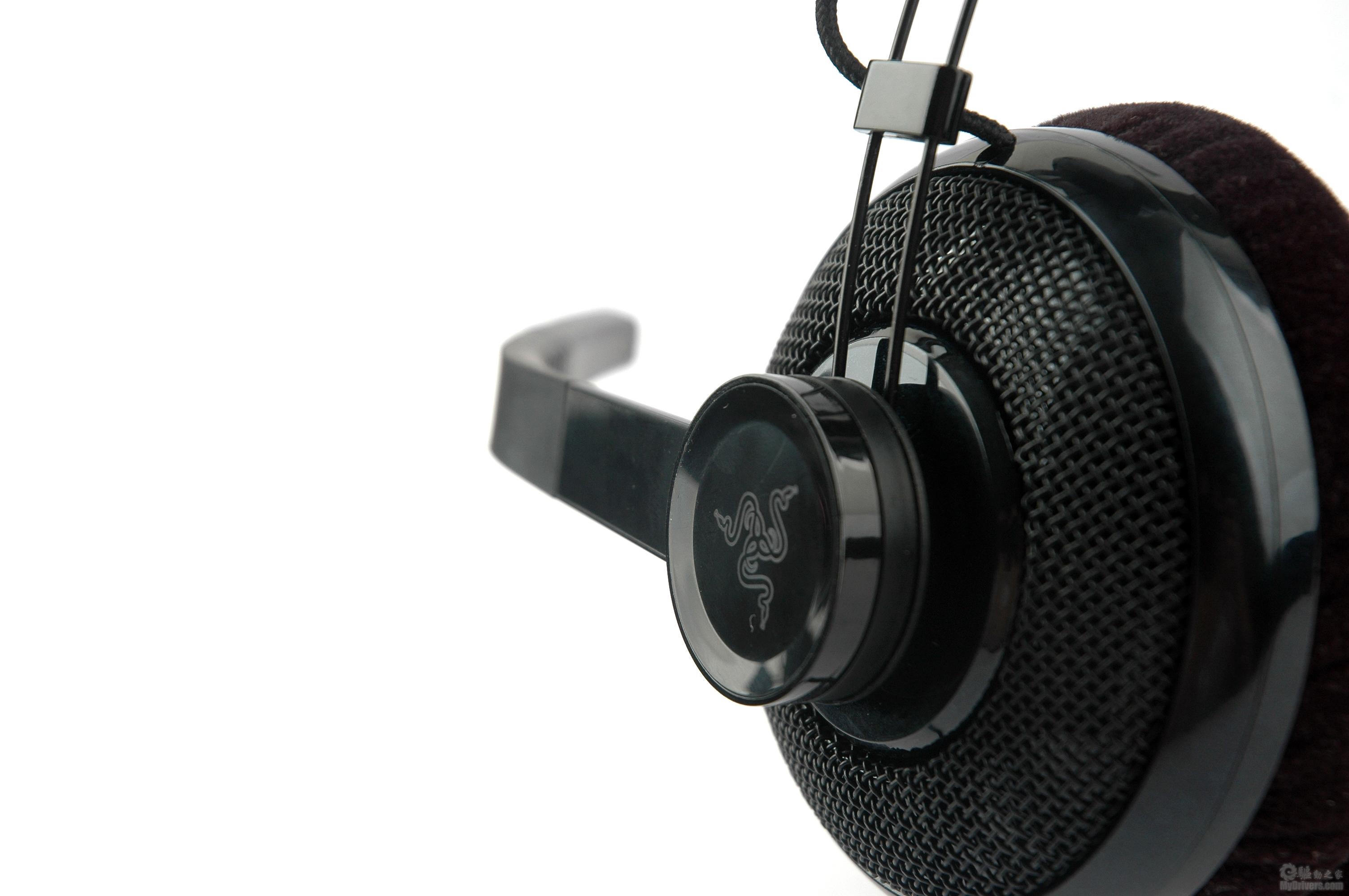 头带的延伸臂是Razer耳机的一大特色,它由两个U型金属滑轨组成,可以随意调整长度,并且没有段落式设计,滑动很自由,但它的缺点也比较明显,如果想让两侧延伸臂同长,需要仔细的观察两边长度,不能听声确认。