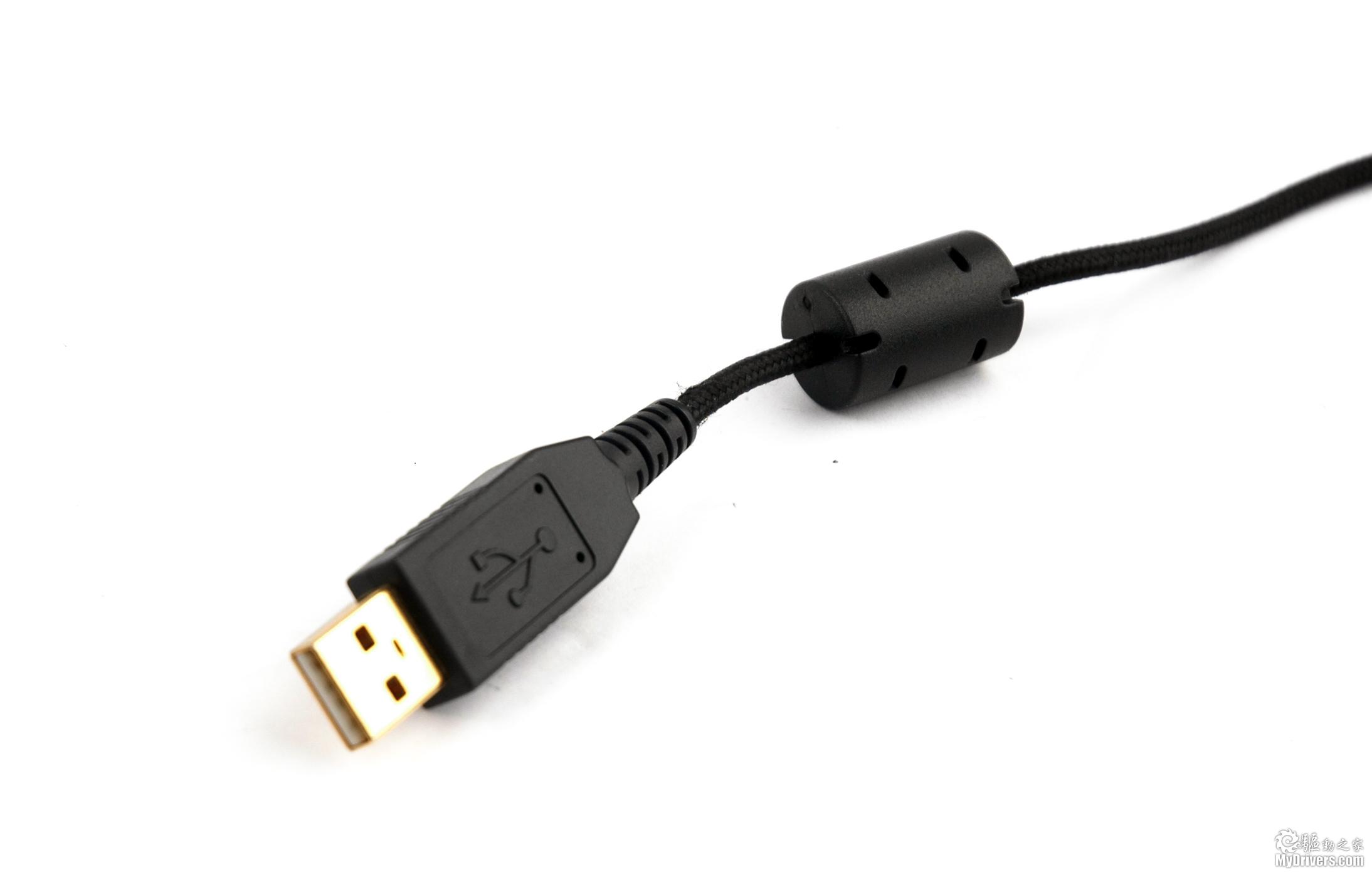 巨齿鲨只有一个USB接口,这样既便于使用,同时也能降低信号的损失,因为电子设备之间的连接节点愈多,信号流的强度便会衰减到更厉害。另外,在USB接口上方的线缆上Razer还增加了消磁环,进一步保证了信号的稳定。