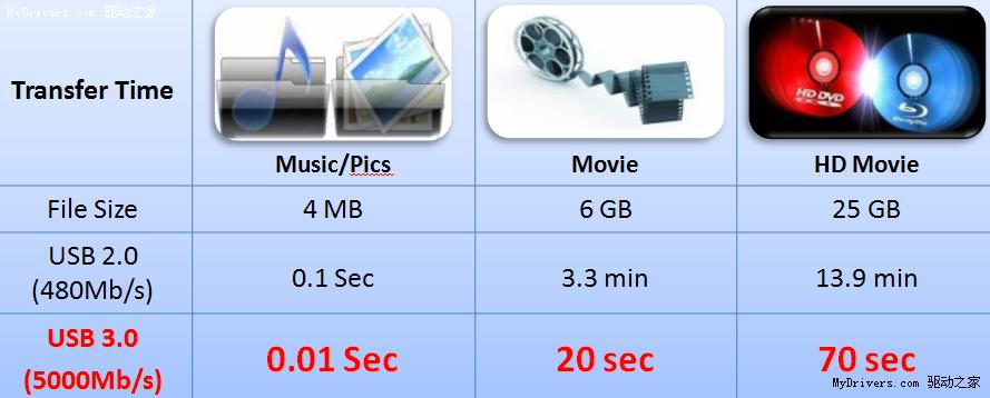 我们目前使用的USB2.0的带宽为480MB/s,而USB3.0的带宽为5.0GB/s