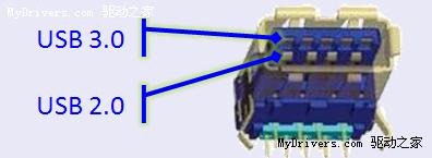我们看上面这张对比图,USB3.0拥有5个金属接触点,而USB2.0则只有4个