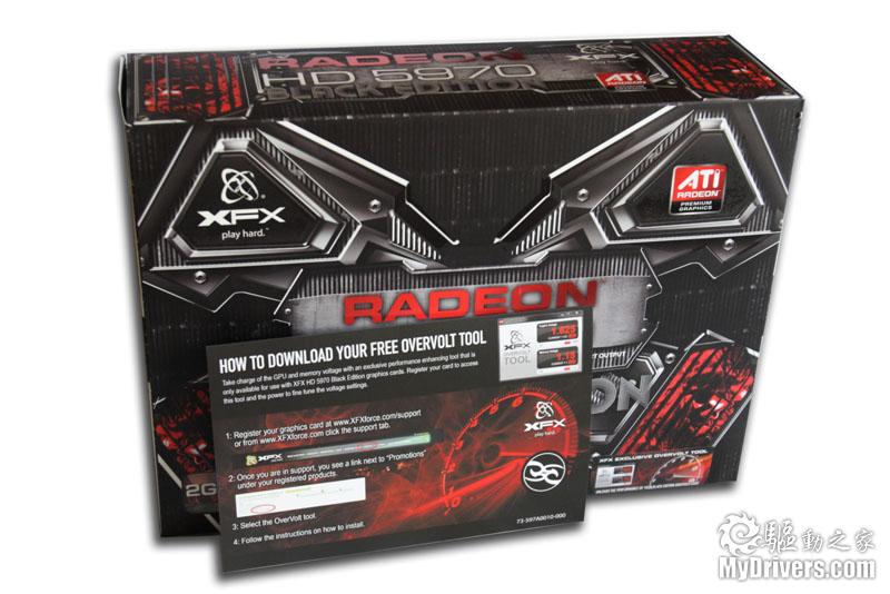 Radeon HD 5970的默认核心频率为725MHz,显存频率则是1GHz(等效4GHz),仅相当于Radeon HD 5850的水平。景钛这款黑版虽然也是这两个频率,但为了应合超频玩家,特别附送了一个专属超频工具“OverVolt Tool”,用户只需要根据包装盒上的指示下载即可。