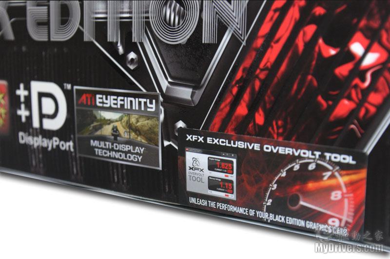 景钛是国内新晋显卡品牌,继承了同门师兄讯景的诸多特色。这款黑版Radeon HD 5970基于公版设计,但使用了重金属风格的散热贴纸,显得相当厚重和扎实,不但从侧面反映了该卡的强悍本质,还颇具视觉冲击力。