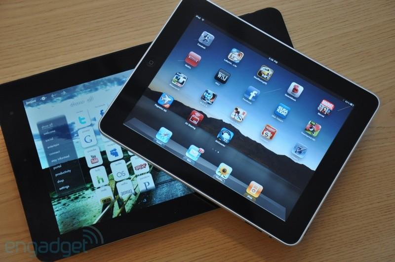 苹果iPad则采用A4处理器,主频1GHz,集成了256MB内存和PowerVR SGX 535图形核心,配备9.7寸IPS面板多点触摸屏幕,支持支持蓝牙、AGPS、3.5mm耳机插孔、WiFi等功能。售价根据配置而定,最低价格为499美元。