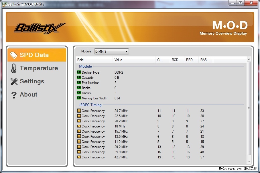 新Ballistix的另一项特色是内存温度传感器,搭配专门提供的Ballistix MOD Utility软件可以对内存SPD信息以及实时温度进行监控。其他内存用户虽然也可以安装该软件,但温度监控和SPD信息监测功能都无法实现。