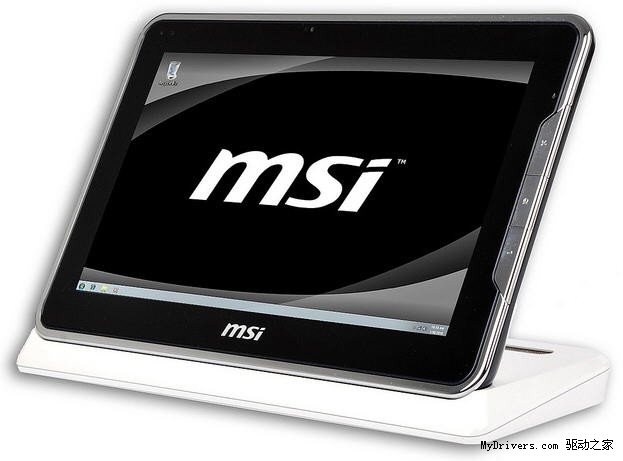 微星还为其搭配了一个白色的底座,安放平板机的同时还提供了更多扩展接口,包括两个USB 2.0、麦克风和耳机、RJ-45、VGA、HDMI和电源插孔。