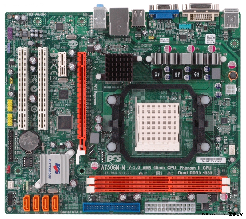 精英A750GM-M采用AMD 740G+SB710芯片组,支持AM3接口的45nm Phenom II处理器,支持双通道DDR3-1333内存,由于采用M-ATX板型,所以主板只提供了两条内存插槽。内存方面,我们选择了金士顿 2GB DDR3 1333,目前价格是320元,这可能是目前最便宜的DDR3内存了,待日后内存降价再添一条2GB也不迟。主板上还提供了4组SATA接口,我们选择希捷的500GB硬盘,售价不足300元,性能很出众。剩余3组SATA接口留着日后升级使用。