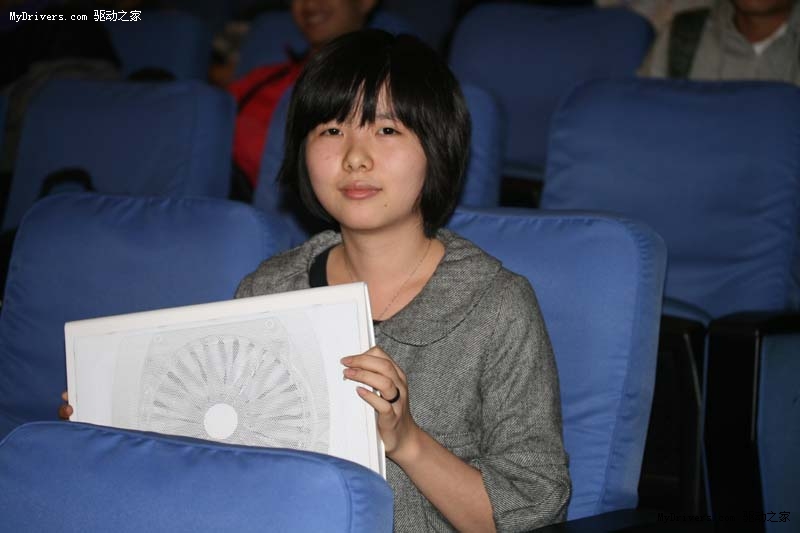 这位可爱的小MM很荣幸哇,获得了奖品,表情很羞涩