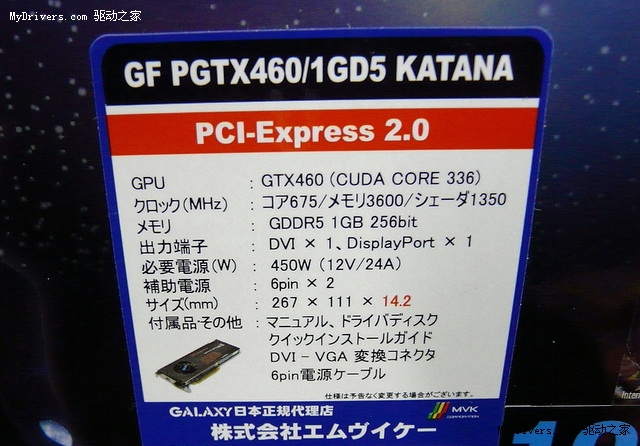 虽然还没有正式发布,但是影驰打造的全球第一款单插槽散热器GeForce GTX 460已经在日本市场上开始销售了,海外版本型号“GF PGTX460/1GD5 KATANA”(武士刀),国内版本自然还是“GTX 460无双”。