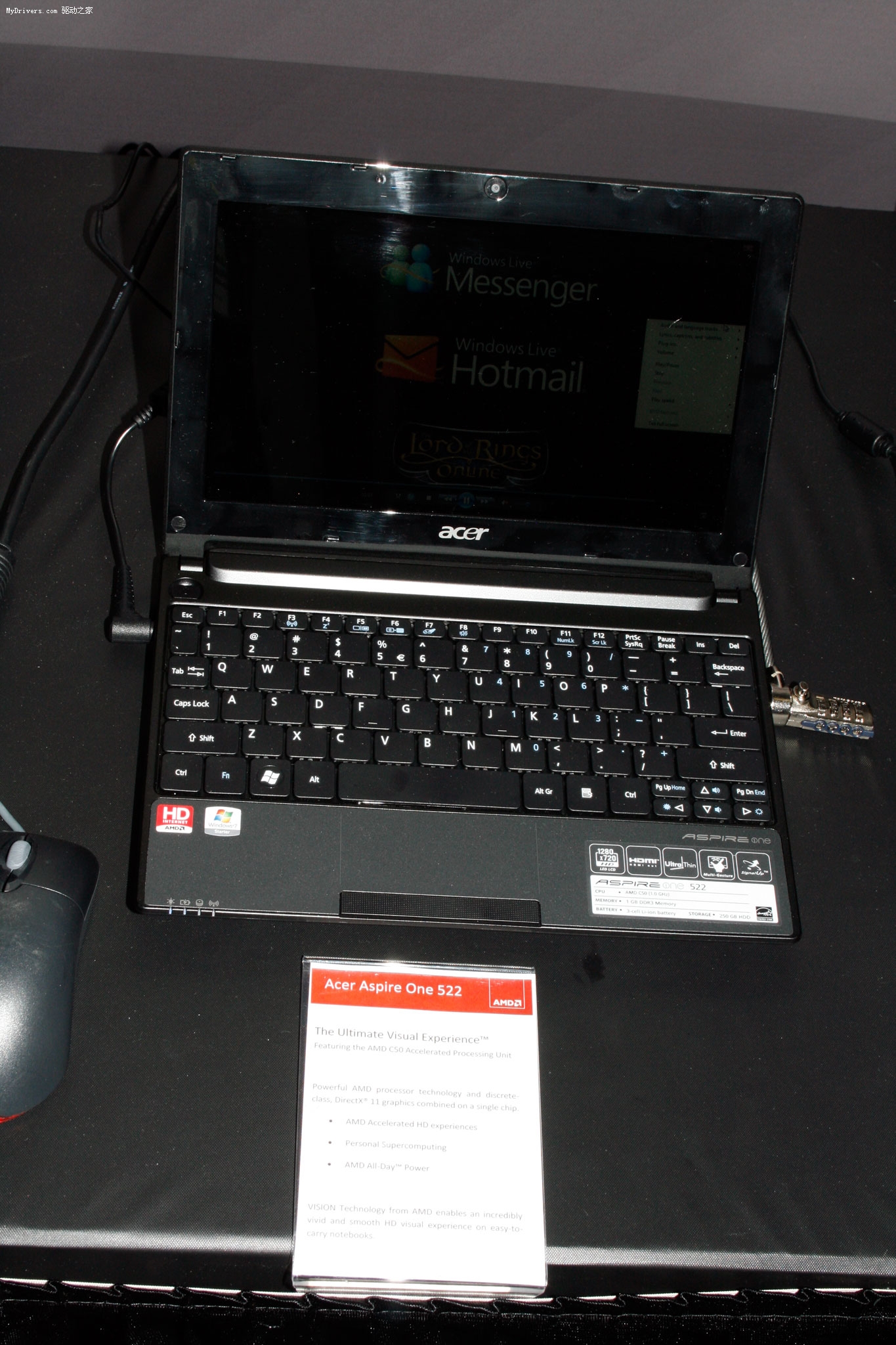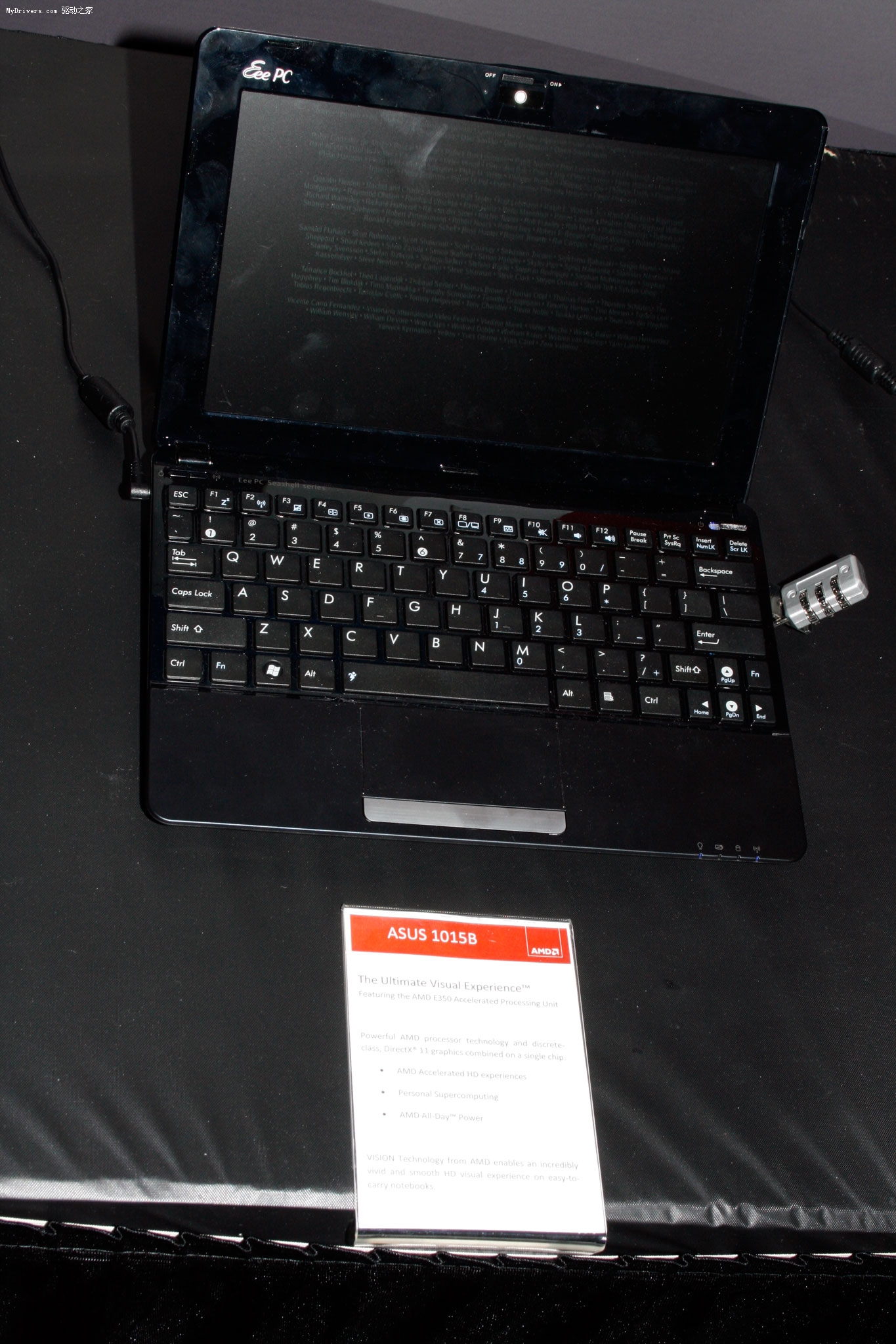 粗略统计,AMD现场摆放了20多台不同型号的APU上网本、笔记本,尺寸从10.1寸到11.6寸甚至还有14寸、15.6寸主流规格,包括: