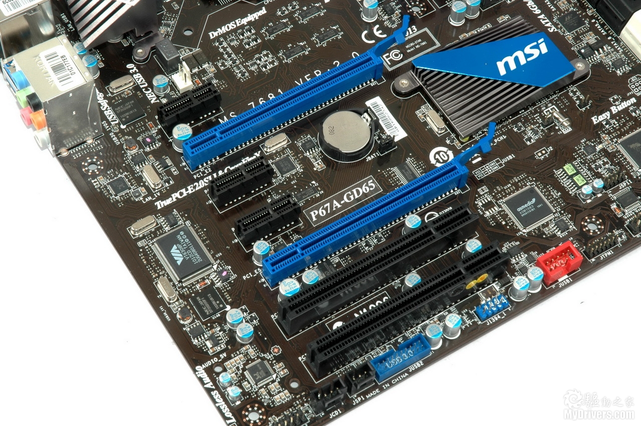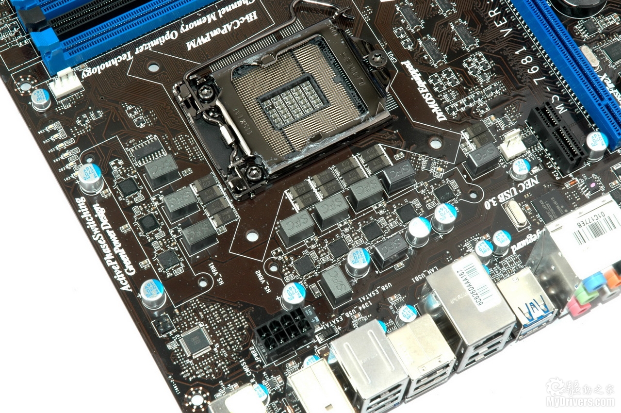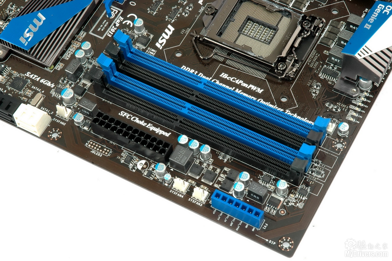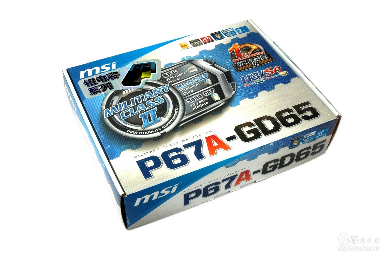 通过之前的测试(http://hardware.mydrivers.com/2/183/183568_13.htm)大家可以了解到Intel Sandy Bridge处理器相对上代产品在性能方面有大幅度提高,而为提供与其相配的基本性能和超频能力,微星在自家P67主板上应用了更高规格的用料,这就是军规二代。新的军规规格包括钽质核心的高导电聚合物电容(Hi-c CAP)、电容量高出30%的SFC电感和固态电容,可以为玩家提供更好的稳定性。