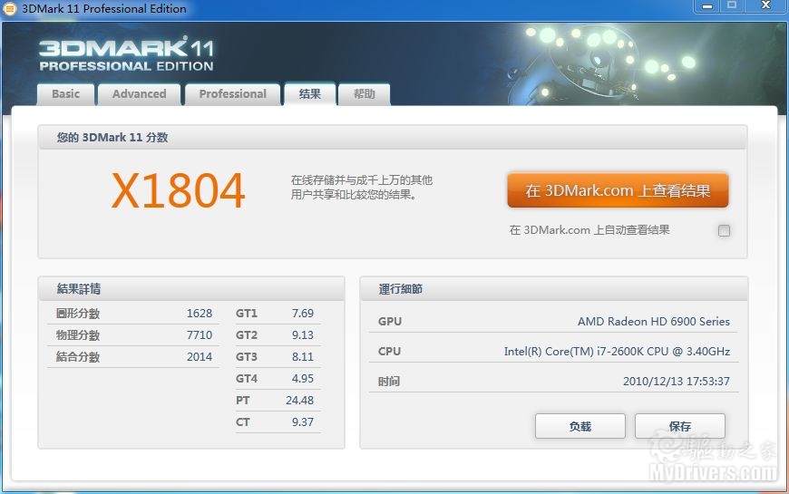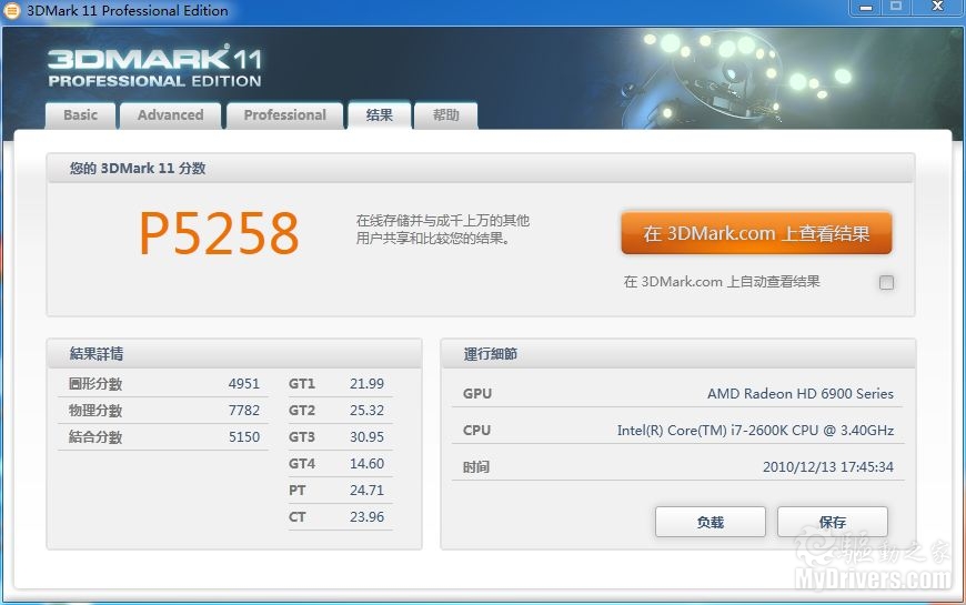 [图形性能测试]在图形性能测试中,我们采用了两款测试软件对平台图形性能作出测试,3DMark Vantage和3DMark 11不仅会对系统中的GPU性能作出测试,还会对处理器部分的物理加速能力进行测试,最终给出综合成绩,下面我们就来看看微星P67A-GD65主板在测试中的表现。