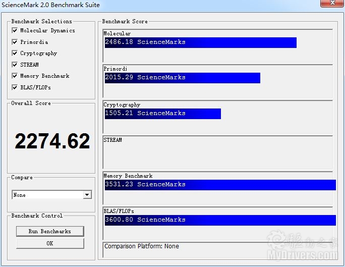 科学运算效能测试,采用更高频率内存的i7 870平台得分仅为1822分。