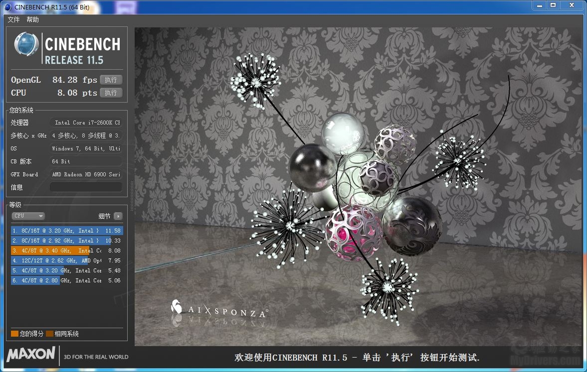 在随后的Cinebench R11.5中也取得了更优秀的成绩。