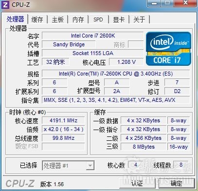 启用超频精灵按钮后,进入系统发现倍频被自动调节为42,我们获得了4.2GHz处理器主频。