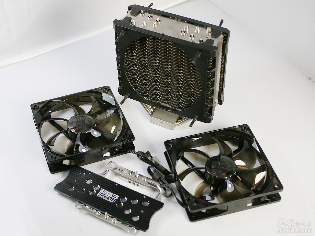 风扇的安装比较特别,将两个风扇按孔位装上后,顶部压板对两个风扇起到固定作用。拆装起来非常方便。