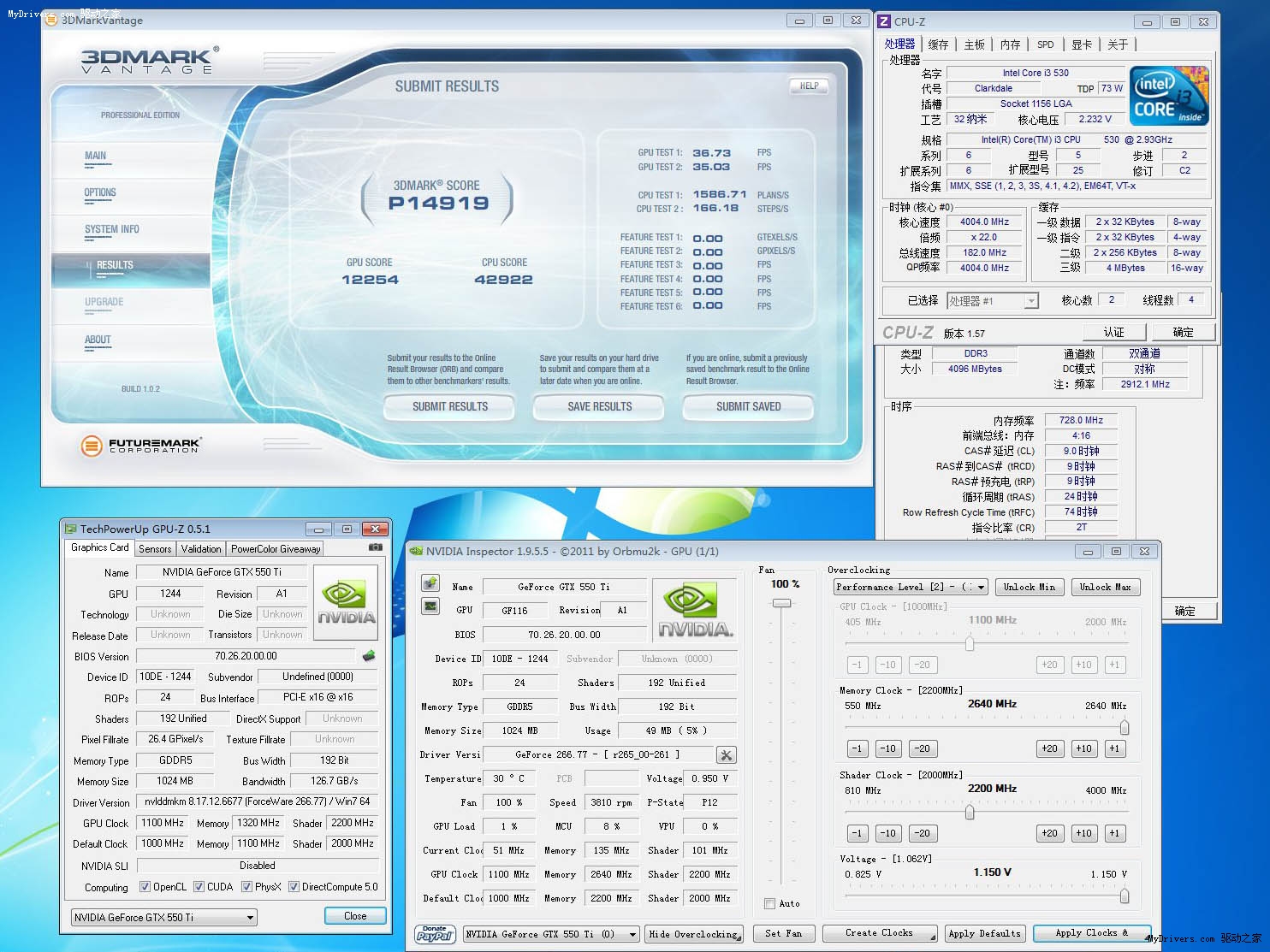 虽然只是使用I3 530 oc 4GHz平台,但超频后的性能提升非常明显,效率惊人,而GTX550Ti的超强超频强力也得到了验证,相信那些极限玩家很快就会对GTX550Ti进行新一轮的极限追逐,究竟GTX550Ti能够创造怎样的新奇迹,敬请大家继续关注。