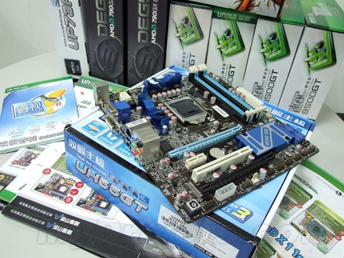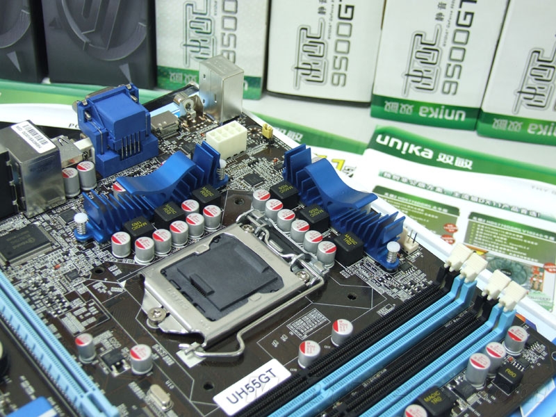 双敏UH55GT基于Intel H55芯片组,支持Intel的32nm的Clarkdale Core i5/i3/Pentium等LGA1156系列处理器,并针对酷睿i3/i5/奔腾G进行了专门的优化,做工和性能都是顶级之选,豪华程度上可与台系相媲美。