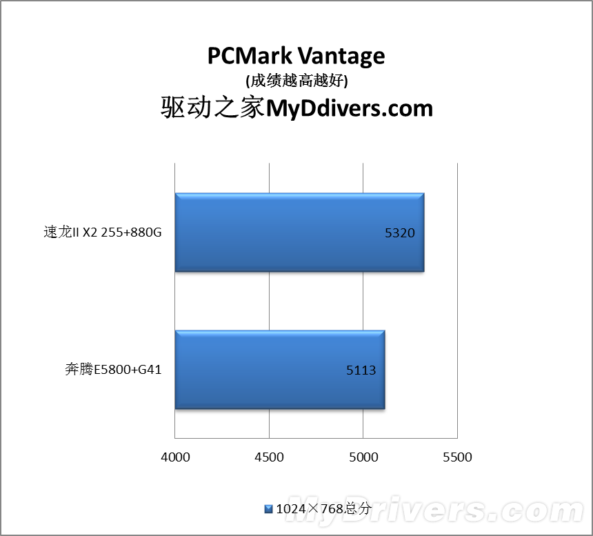 PCMark Vantage衡量的是一套系统的整体综合性能,速龙II X2 255以二百多分胜出,幅度大约为4%。观察各个子项,速龙II X2 255在游戏方面领先最多。
