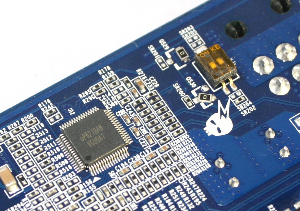 核心供电采用uPI uP6218 PWM主控芯片,最高支持8相供电,普遍勇于两千元级别顶级主板上,支持最新的英特尔VRM11。由于这款芯片没有内置驱动IC,所以PCB背面采用了外置Driver式驱动,每颗uP6202芯片独立驱动2相供电,相比传统内置设计温度更低,驱动更精确。