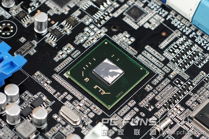 在显示输出接口附近的两颗asmedia的ASM1442电平转换芯片是分别为DVI与HDMI提供直连的通道,这种设计在H55时代便已经出现了。