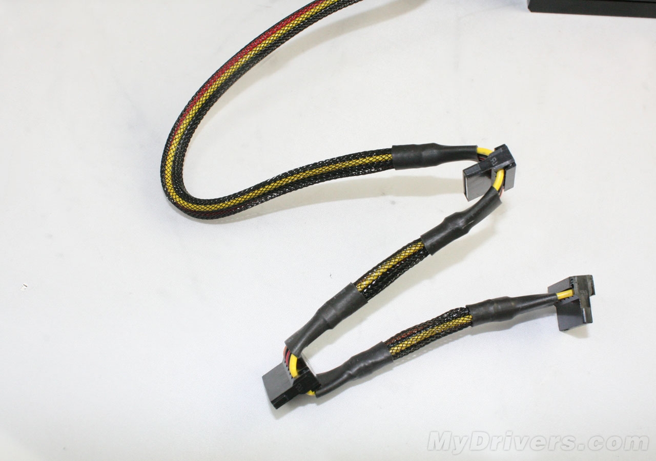 再好的电源也离不开线材的支持,酷冷至尊GX 450W提供的线材都十分常用,并且都有蛇皮网覆盖,除了20+4pin主板供电以及4+4pin处理器供电线外,还有6pin显卡供电,以及三根SATA供电线一级一根D型口供电线,线材长度足以满足背走线设计。