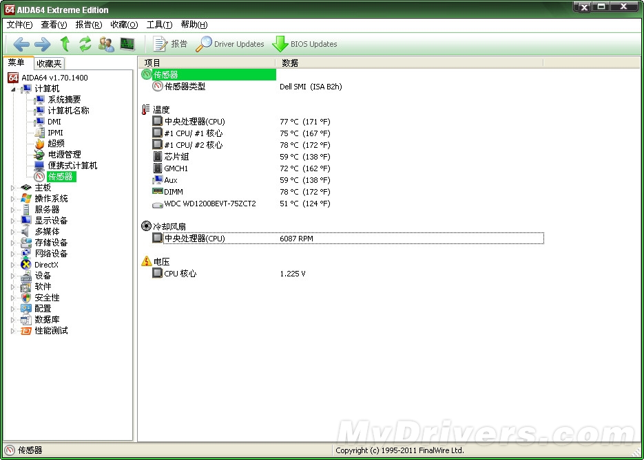 我们选用的是一款14英寸的戴尔笔记本,型号为戴尔成就A840,CPU为赛扬双核T1400(1.73G),内存大小1GB,型号为 DDR2 800,集成显卡。由于使用时间长,没有清理过内部灰尘,加上体积较小,所以散热很差,温度也相当惊人。