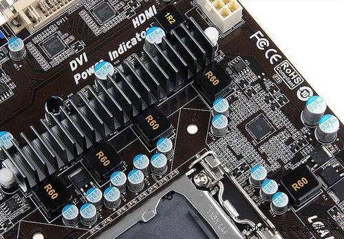 供电部分,映泰TZ68A+采用5相供电设计,全固态100% X.D.C固态电容。