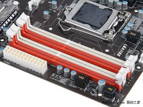 内存方面,映泰TZ68A+主板提供4条DIMM插槽,支持双通道DDR3内存,内存可超频至2133MHz,并单独设立了一相内存供电以保证内存在高频率工作下的稳定。