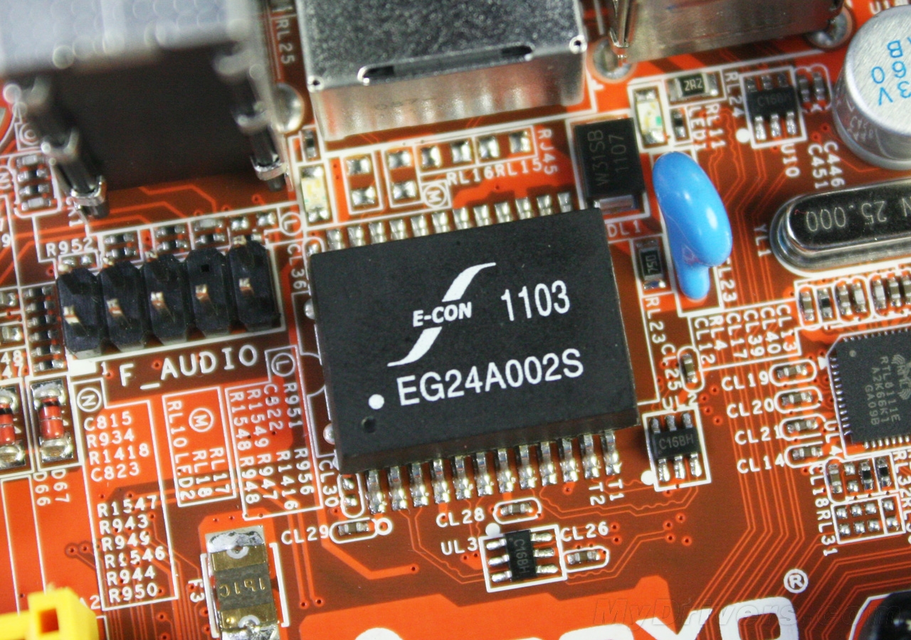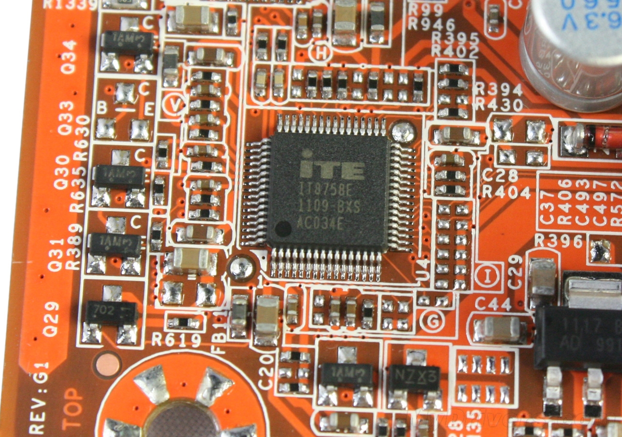 由于该卡尺寸较大一些,由Hudson D1南桥提供了PCI-E x16插槽(实际带宽4X)、PCI-E x1插槽及PCI插槽各一,新旧扩展卡都可以找到各自的位置。