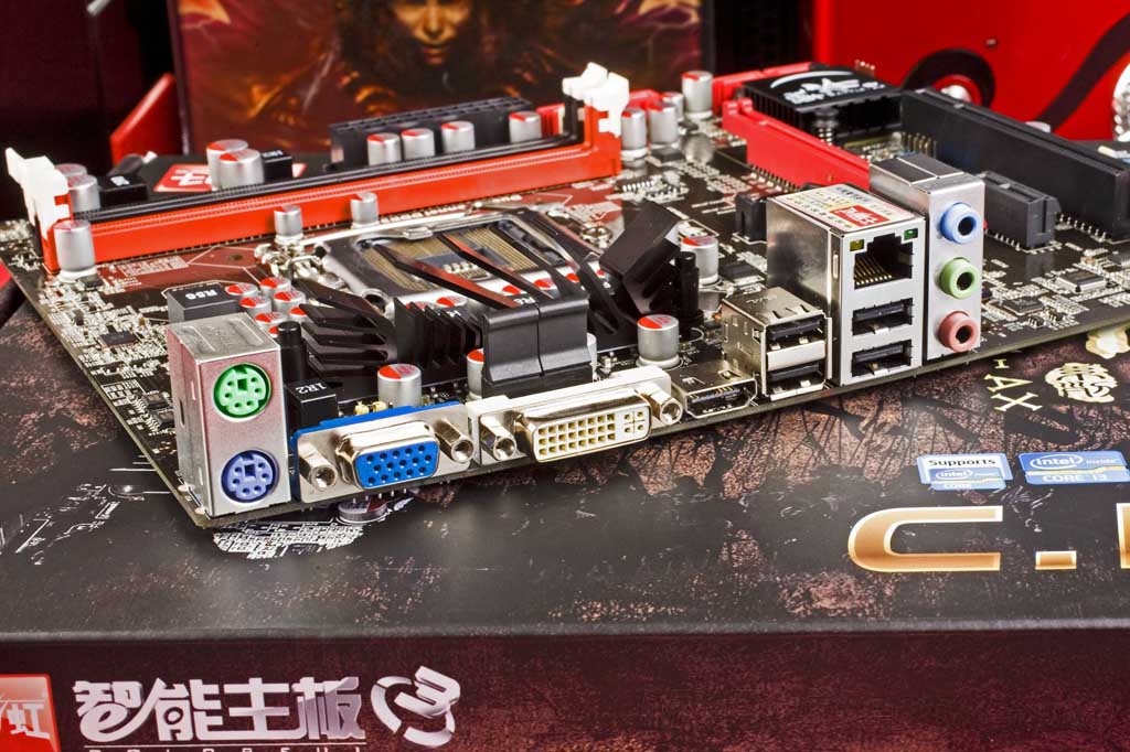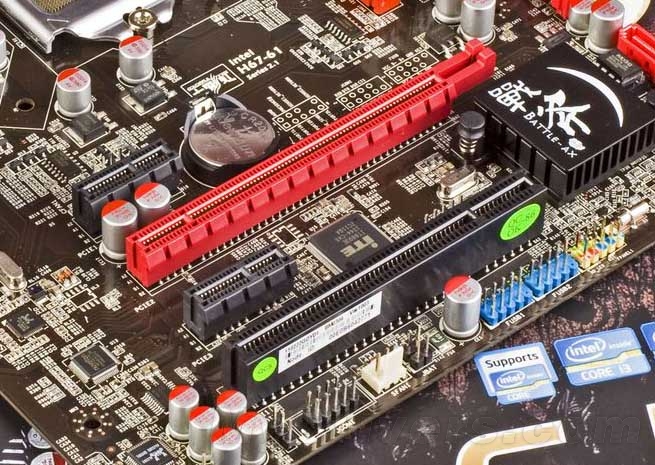 支持双通道DDR3 1066/1333内存规格。由于主流内存单条容量基本上是2GB,并且已经出现单条4GB版本。所以该主板仅提供2根内存插槽。磁盘方面,B3步进的H61芯片上覆盖战斧标志散热器,标配4个SATA 3Gb/s接口,并且是国内首款通过BIOS破解支持AHCI硬盘加速的H61主板。