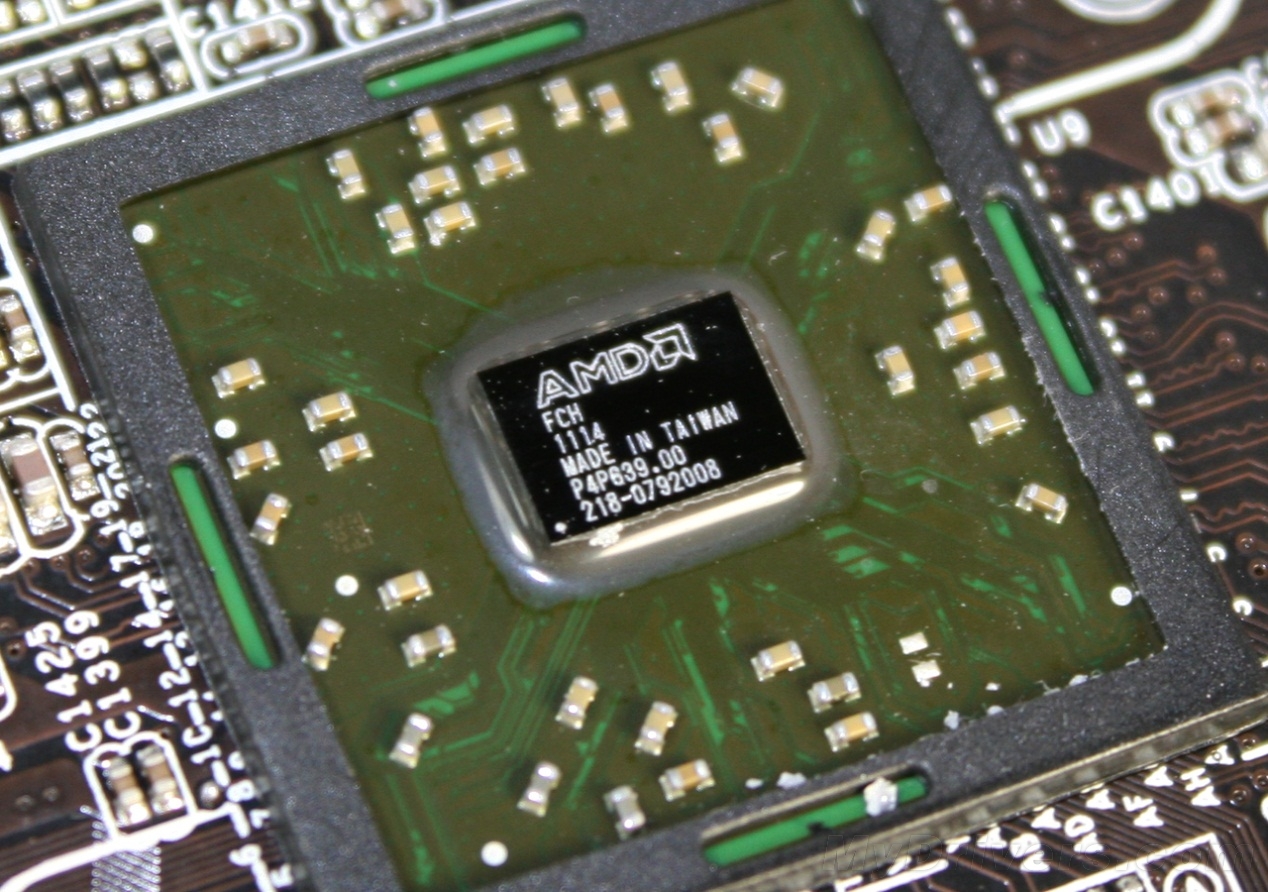Hudson D1芯片组,单芯片设计,基本相当于原来的南桥。通过PCI-E 2.0 x4 UMI高速总线与处理器相连,集成四条PCI-E 2.0 x1 GPP通道、PCI 33MHz总线控制器、时钟发生器,支持14个USB 2.0、2个USB 1.1、6个SATA 3Gbps接口,但没有USB 3.0(需要等到Hudson D3),也没有RAID、基于FIS的切换机制、GbE MAC千兆以太网控制器。
