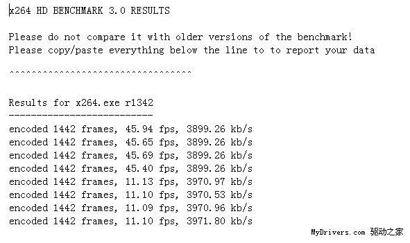 【x.264转码性能测试】现在高清视频在我们生活中的地位已经越来越高了,你需要的不仅仅是高清片源了,你更加需要一个能快速转码的个人电脑(当然电脑上也要装有最好的转码工具)。x264 HD Benchmark就是这样一款检测电脑高清视频性能的测试软件,程序对多核进行了优化,安装需要先安装AviSynth 2.5.7才能运行。官方网站还有CPU的已测性能对比图,可以给我们购买CPU一个不错的参考。