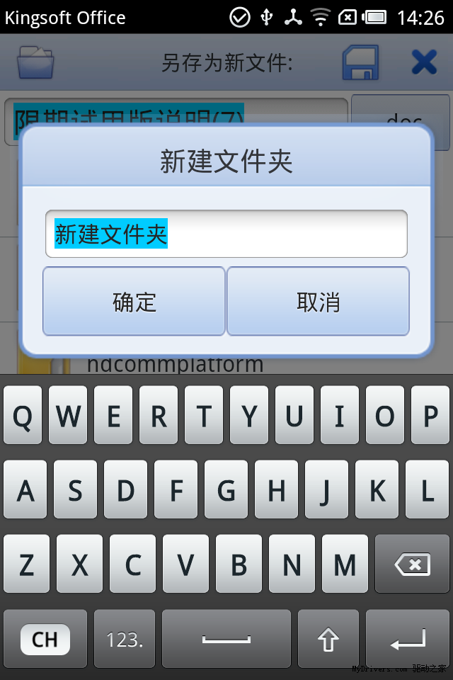 试用过程中我们还发现,当文档选择“另存为”时工具栏的左边新增加了一个小文件夹的图标,点击以后原来是添加了“新建文件夹”的功能,在文档管理上功能更加地完善了。