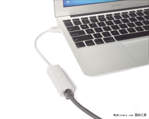只需通Macbook Air的USB接口,用X-doria苹果电脑USB以太网转接器转换成以太网口,可实现连接有线网络,解决无Wifi的尴尬。
