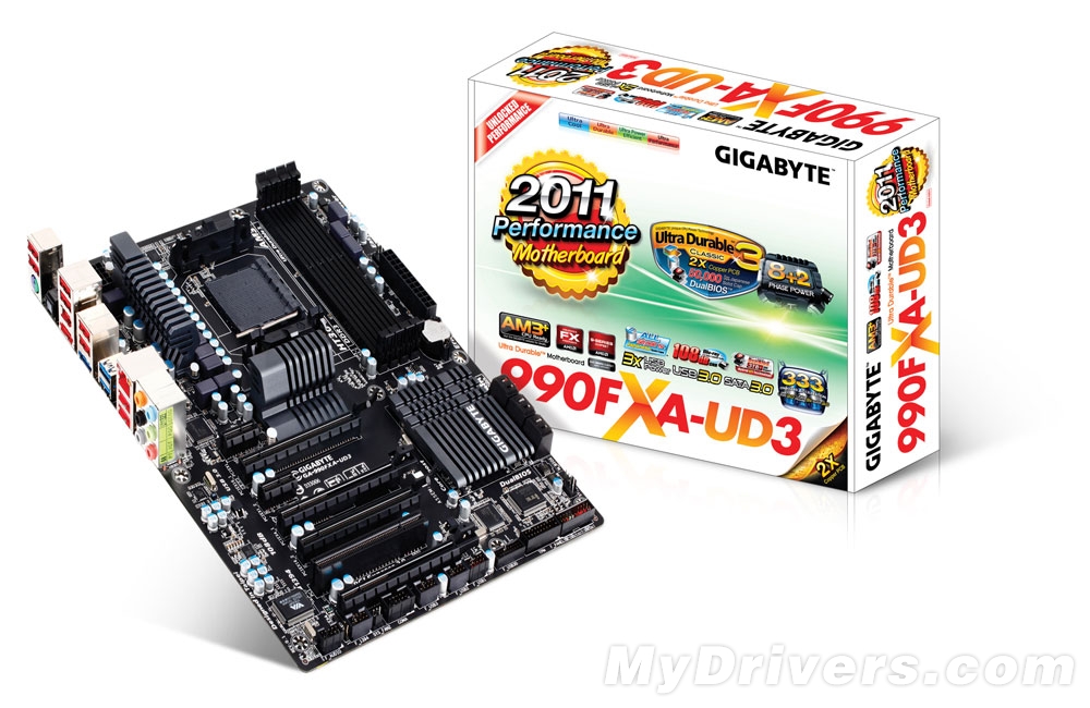 规格方面,技嘉GA-990FXA-UD3采用AM3+插槽,支持AM3/AM3+两代处理器,4条DDR3-2000双通道内存插槽最大支持32GB内存,存储方面有南桥芯片提供的6个原生SATA 6Gbps接口;扩展插槽方面有四条PCI-E x16插槽(其中两条实际带宽只有4 x),支持双路CF/SLI,交火时两条PCI-Ex16插槽都工作在x8模式;此外还有2条PCI-E x1插槽以及1个PCI插槽。主板集成Marvell 88SE9172芯片提供2个eSATA 6Gbps接口,还集成有VIA VT6308芯片提供两个IEEE1394a接口(板载插针、背板各一个);2个Etron EJ168芯片可以提供4个USB 3.0接口(背板两个,板载插针可以提供两个前置USB 3,0)。