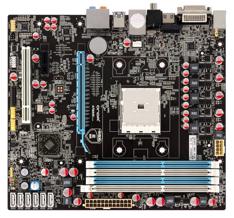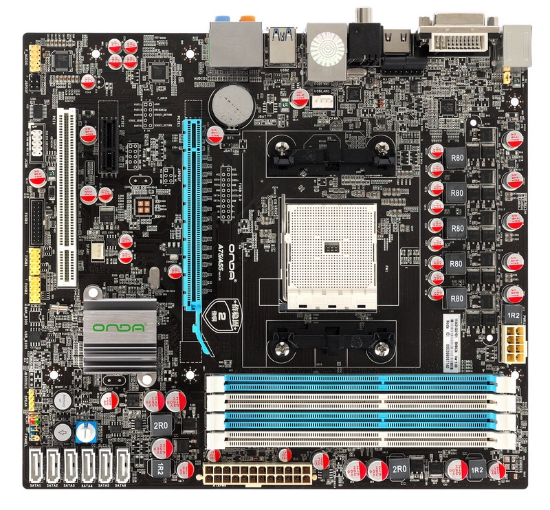 仅以499元首发上市的“昂达A75T魔固版”,价格不可谓不震撼。作为一款装备全固态电容设计、2倍铜基板、五相供电(每相搭配3个mosfet管)的高配置A75主板,这样的价格几乎无敌。从规格上看,昂达A75T魔固版还板载了近年来广受欢迎的一些"倍稳固2技术规范",IOS直观智能超频调压系统、IES智能省电技术,memory ok内存智能调节技术,光纤/同轴、HDMI等多媒体接口齐全,四条双通道DDR3 -1866 DIMM插槽,配置规格相对较高。该芯片组原生支持USB3.0以及SATAIII 6Gbps接口,全面的素质与做工令其玩家称赞;这将是一款非常得力的APU主板,下面我们就来以其欣赏一下这款主板的细节部分吧。