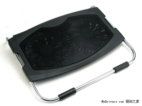 散热器的四周由一根一体成型的钢材质圆管组成,形成了一个半包围结构,并且在顶部自然形成了一个抬起的角度,符合人体工程学的需求,可以让用户在长时间使用笔记本电脑时保持腕部和手部的舒适。并且钢材质相比一般的工程塑料来说,质感也更好,产品整体坚固度也是再次提升。