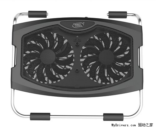 九州风神 DEEPCOOL 皓月IV 搭配造型另类的双 14CM风扇,透过上面的金属网罩,可以将气流全面且均匀地输送到笔记本底部,而双风扇的设计,也避免了传统单风扇可能造成散热死角的问题。