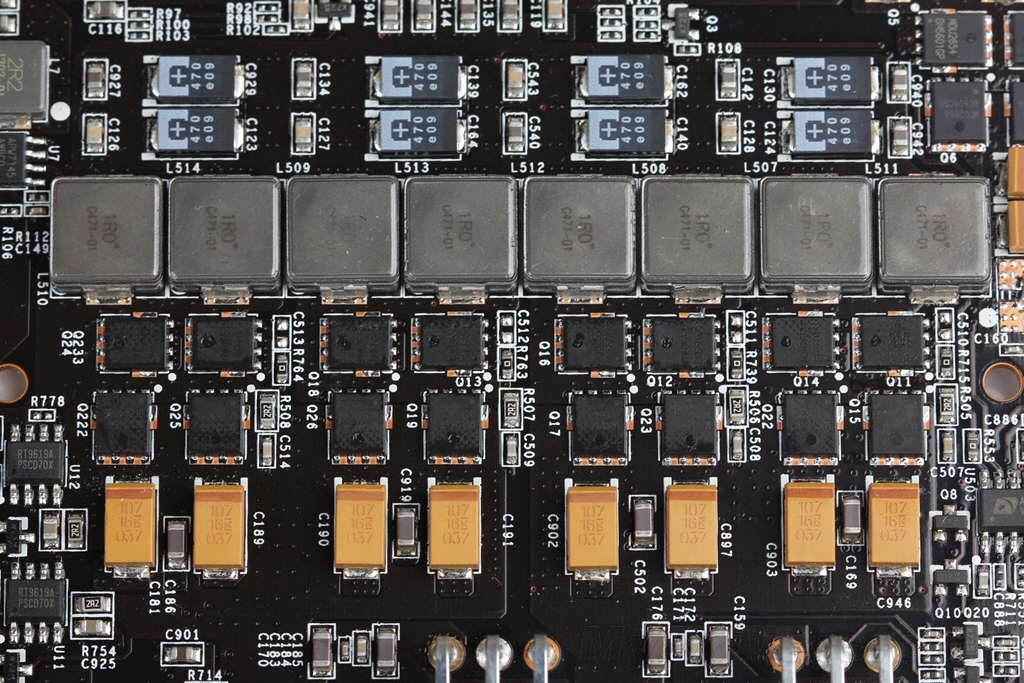 简单地说,供电模组之于显卡的意义,就是为芯片提供稳定、纯净电流。所谓纯净电流是相对于尖峰和高频杂波而言的,在电流传输过程中受到各种因素的影响,电流时而会产生传输不稳定的情况,而现在一颗动则十几甚至几十亿晶体管的GPU中,如果供电不加滤波击穿晶体管是轻而易举的事情,GPU寿命会大幅降低。因此,相数越多,电流就可以更均匀地被分配到每一相,减小单相负载,获得更大的超频空间。