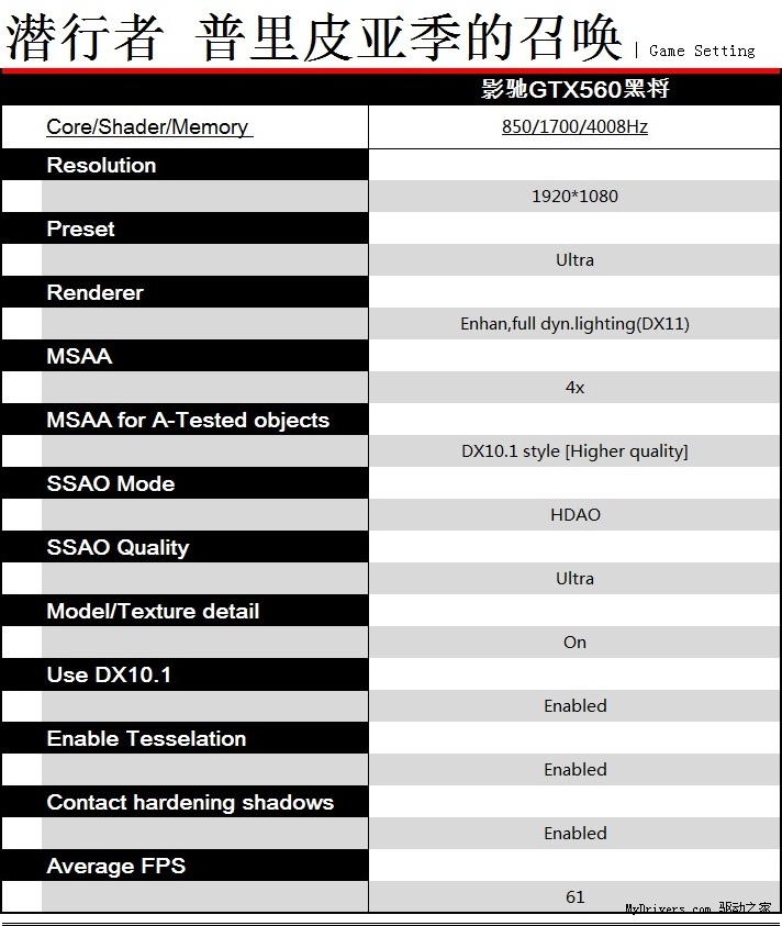 GTX560发布至今一直是热门显卡中的首选,凭借着强劲的性能以及千元价位的优势,完美占领中端市场的性价比王者之位,而GTX560的性能到底有多强?我们就选择了多款热门的主流游戏进行测试,借此以查看GTX560的性能到底有多强,而本次测试均采用1920*1080的分辨率以及全DX11游戏进行测试!