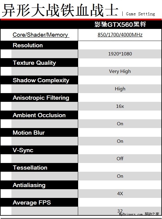 《异形大战铁血战士》有着令人惊叹的画质,但其硬件要求也比起大多数DX11要求更加高。强大的画质与要求下让众多显卡望而却步。而影驰GTX560黑将拥有的32个ROPS大大增强了抗锯齿性能,而在最高端画质下开启4x AA依然能够在1920*1080全高清分辨率下保持30FPS基础流畅帧数,而在1680*1050的分辨率下则拥有更高的帧数,达到34帧。玩家体验《异形大战铁血战士》惊叹的画质不再困难