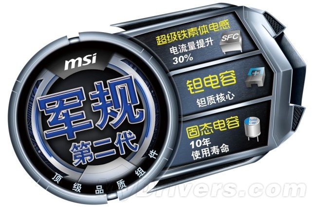 微星“第二代军规组件”在原有“军规”用料基础上进行升级,采用了更高规格的料件。“第二代军规组件”依然采用了钽电容供电,它能够稳定电压并且拥有超过20年的寿命;而军用级SFC超级铁素体电感,能降低电源损耗和电磁干扰,它的普及势在必行,在这方面,微星领先于行业其他厂商。同时,微星采用了“军工级固态电容”,其具有超大容量,超低ESR以及不爆浆的特性,并且不会消耗过多的能量,提高电源的效率。