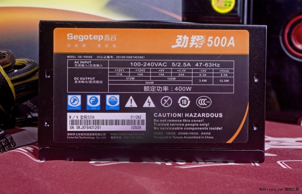 12V的联合输出是判断一款电源的负载能力强弱的重要指标。劲翔500A具备双路输出,+12V分别可达17A和14A,联合输出功率高达372W,占总功率的93%,无惧高功耗单显卡的挑战。