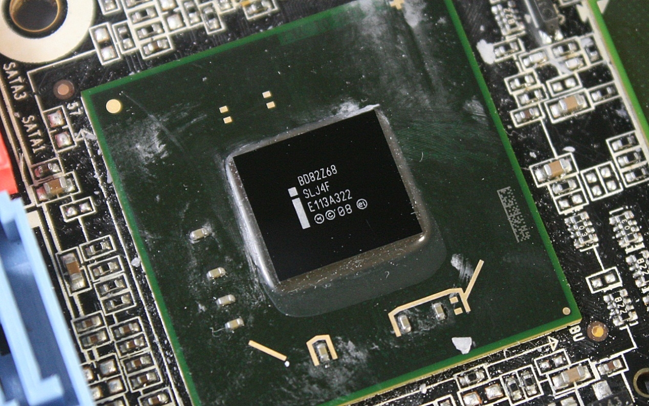 赏析二:板载芯片及特色一览拿掉散热器后可以看到板载的GT 430核心和Z68芯片了,二者使用同一个散热器。虽然GT 430发热量不大,但二者放到一块儿的散热问题还是令人担心。