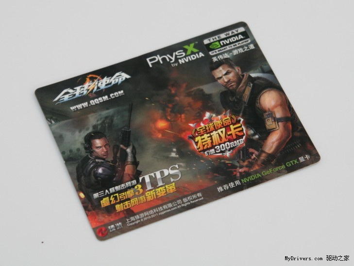 《全球使命》是由臻游网络与英佩游戏历时2年联合研发,采用虚幻III(Unreal Engine III)引擎技术的第三人称射击网游上市之后,玩家关注度极高,现购买耕昇GTS450以上显卡即送价值300元全球使命特权卡。