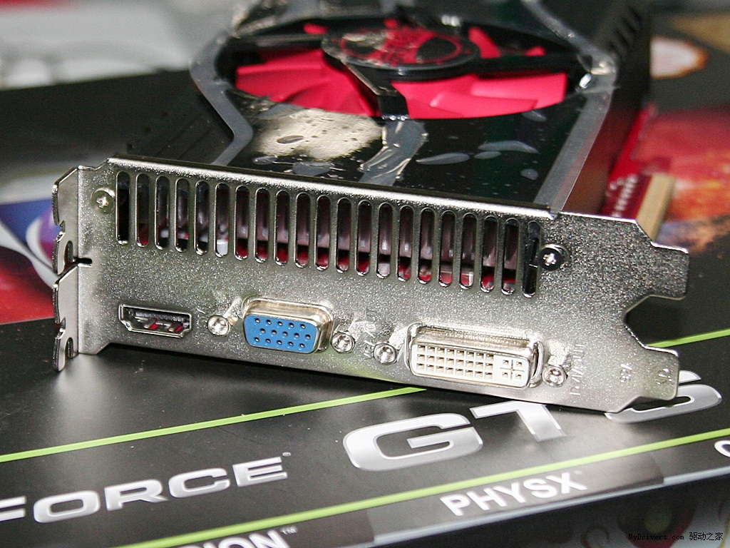 输出部分,耕昇GTS450马超版搭配了VGA+DVI+HDMI输出,支持各种类型双头输出模式,以及HDMI高清输出模式,可实现高达2560x1600的高分辨率输出。