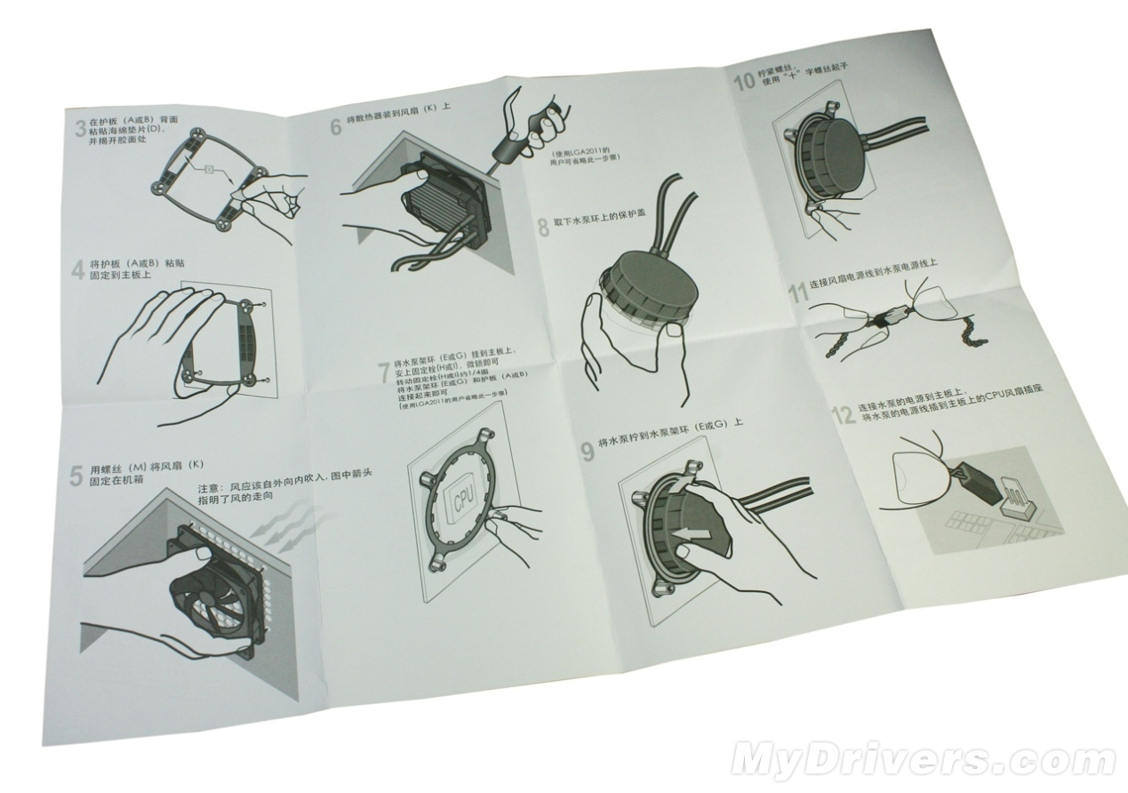 散热器主体、风扇以及附件都放在泡沫底座中,布局规格与推土机/SNB-E水冷散热器十分相似,因为他们都是Asetek代工的。