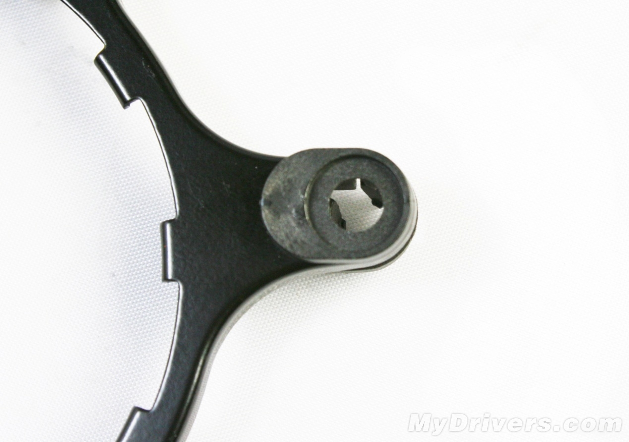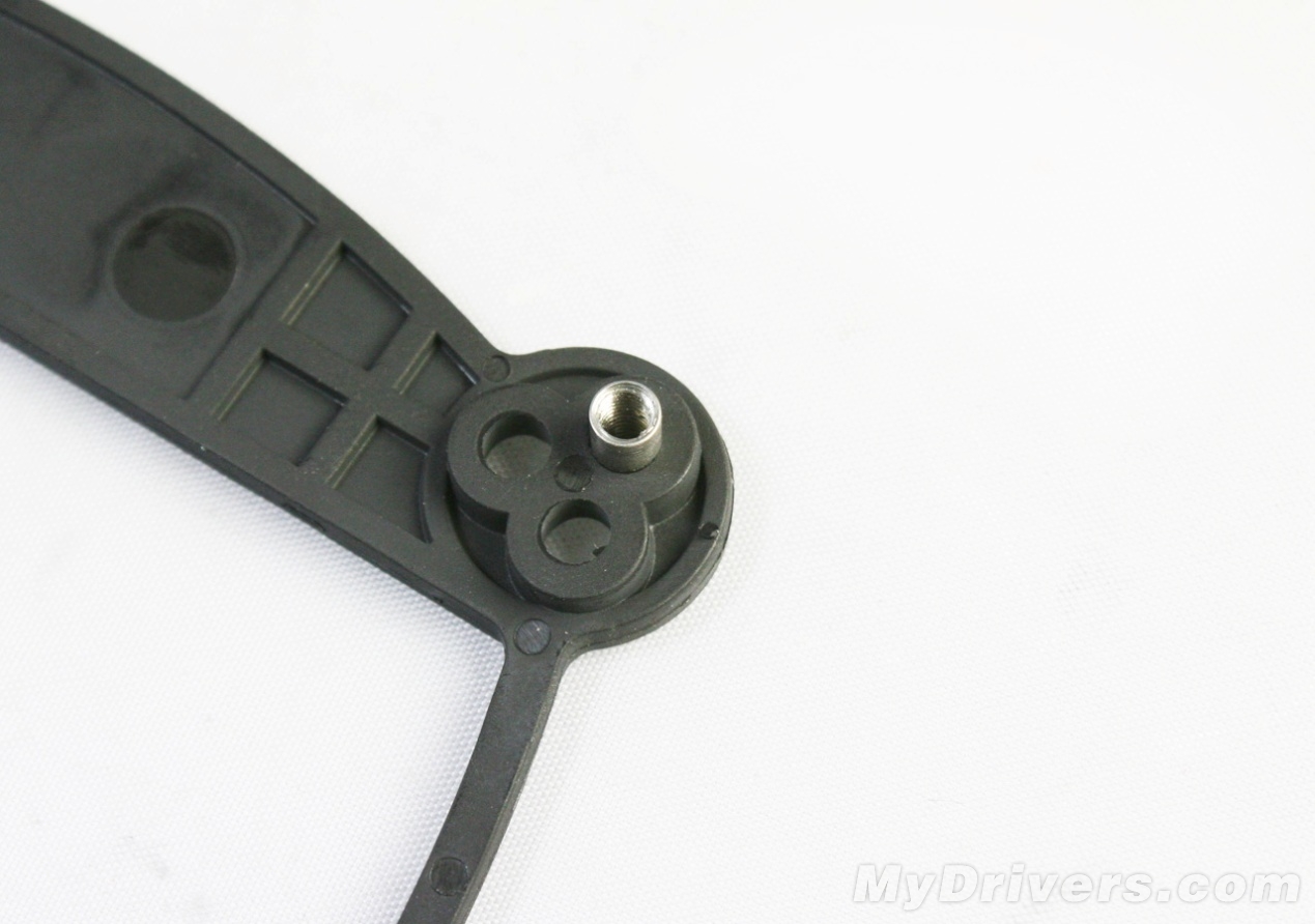 【鲨鱼高手688LC散热器赏析二】左侧的紧固螺丝是为鲨鱼高手散热器准备,右侧的则是为Intel原装散热器底座所准备,二者螺丝孔的直径及长度均有所不同。